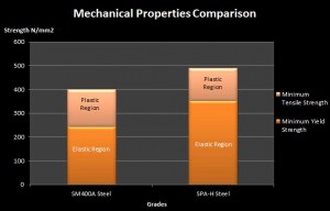 SM400A comparison with this grade of SPA-H Steel material will show how SPA-H differs with SM400A in chemical composition & mechanical properties.